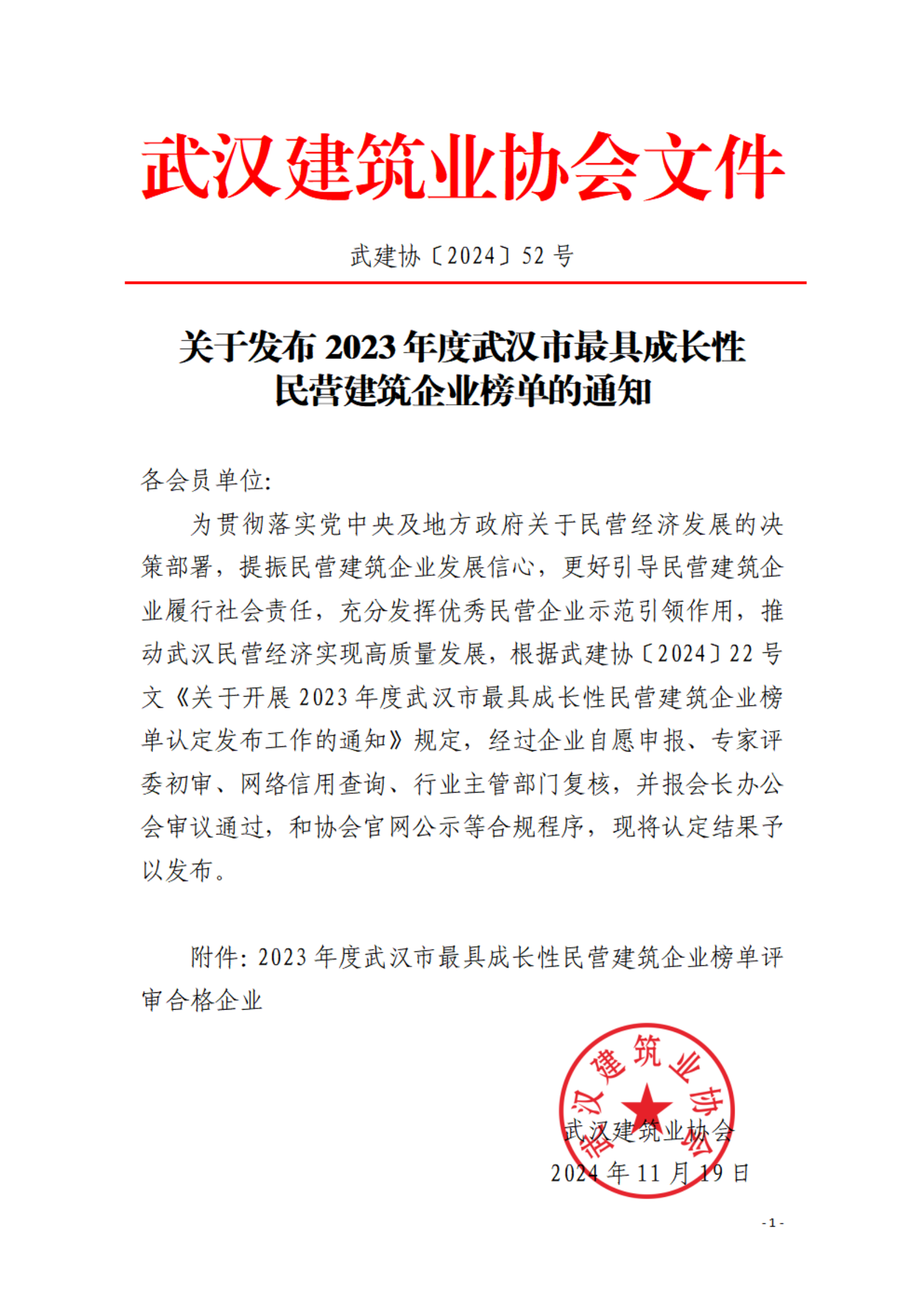 - 2024-11-22湖北省建工第五建設(shè)有限公司榮膺2023年度武漢市最具成長(zhǎng)性民營(yíng)建筑企業(yè)...[圖]